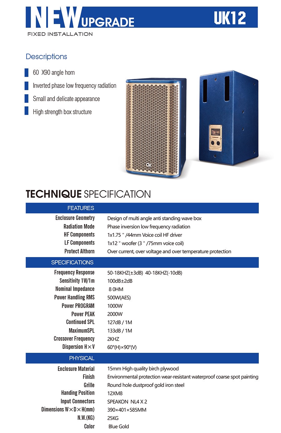 Loa DK UK12 PR là dòng sản phẩm cao cấp kỷ niệm 15 năm thành lập Dardankings. Là dòng loa đầu bảng nên được hãng ưu ái sử dụng công nghệ sơn mài tuyệt đẹp tới từng đường nét. Một tuyệt phẩm của hãng DK. Loa DK UK12 PR là phiên bản đặc biệt nên dù công suất loa 500W nhưng Độ nhạy lên tới 127dB 1w/1m là rất khủng luôn nha anh em.