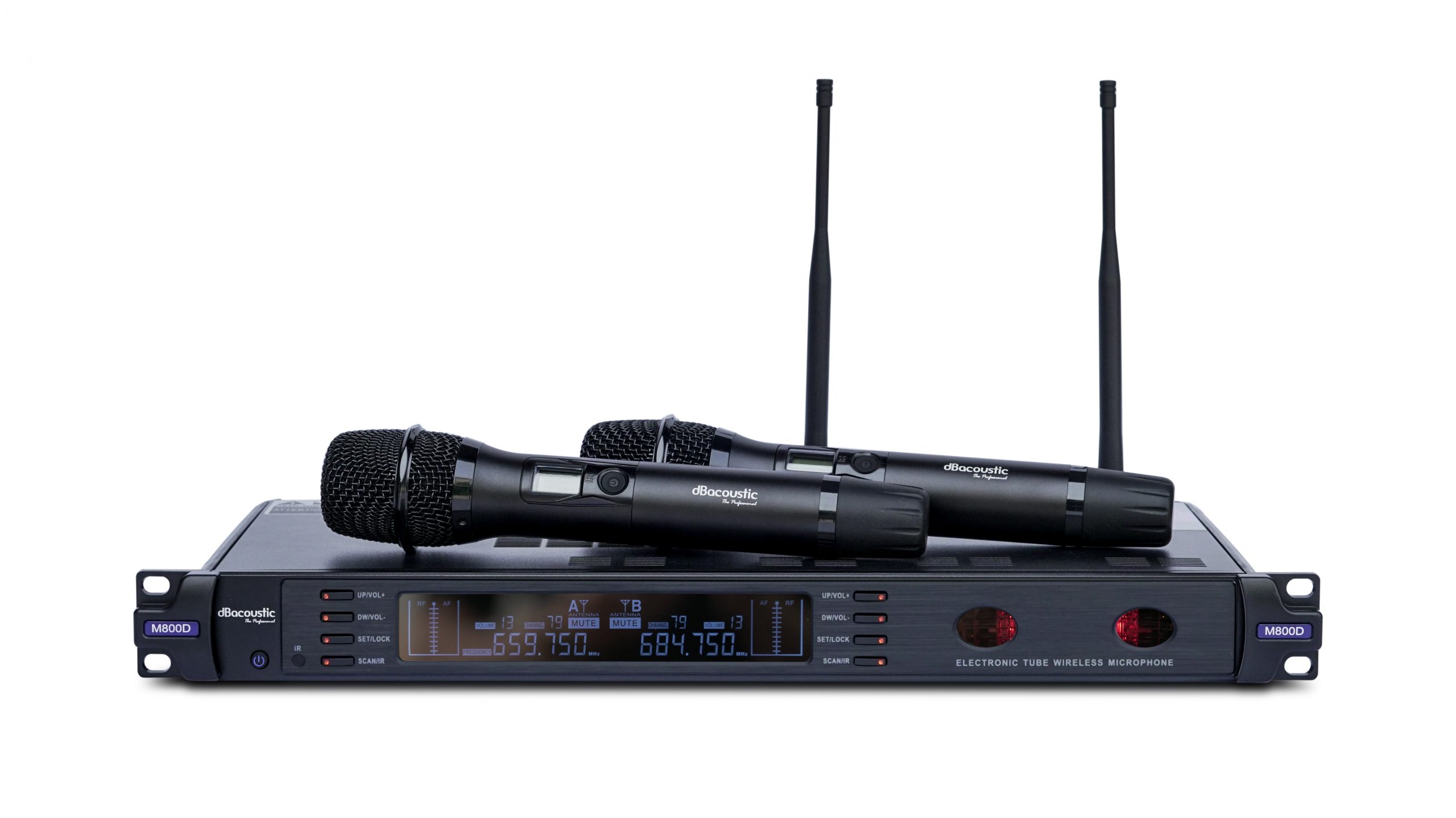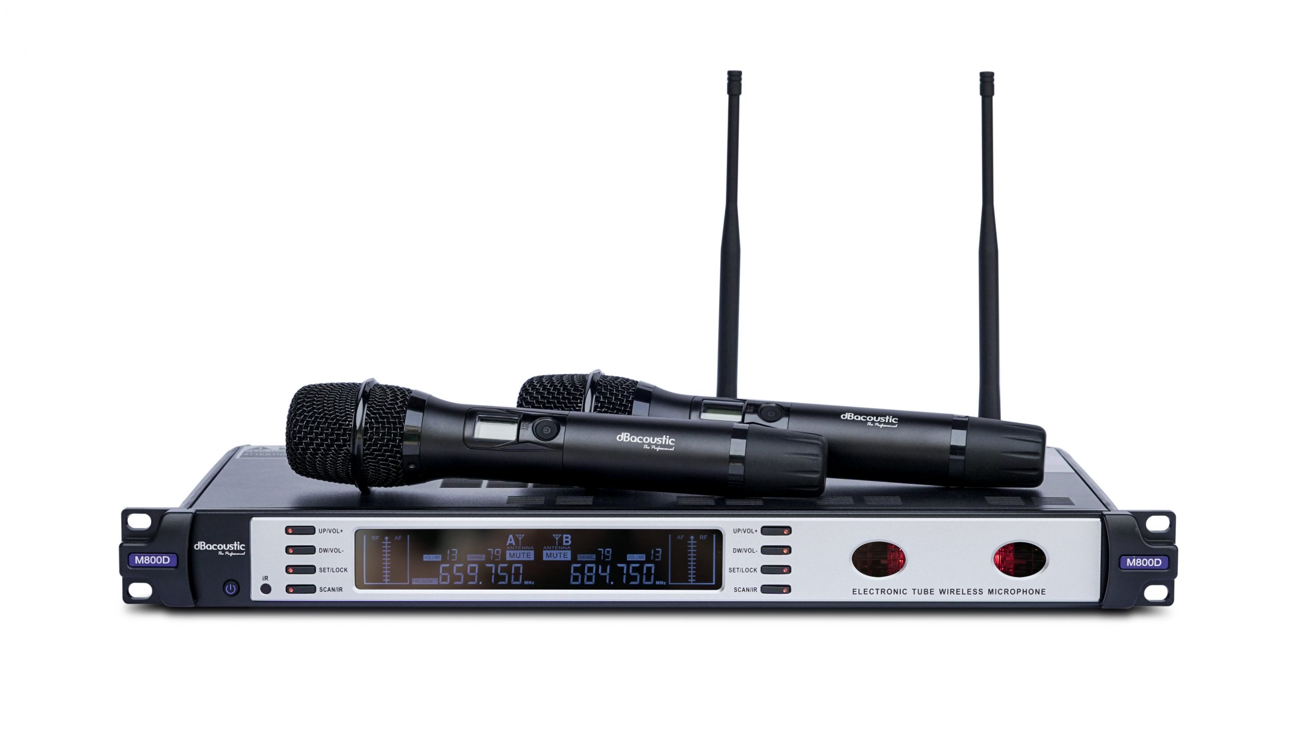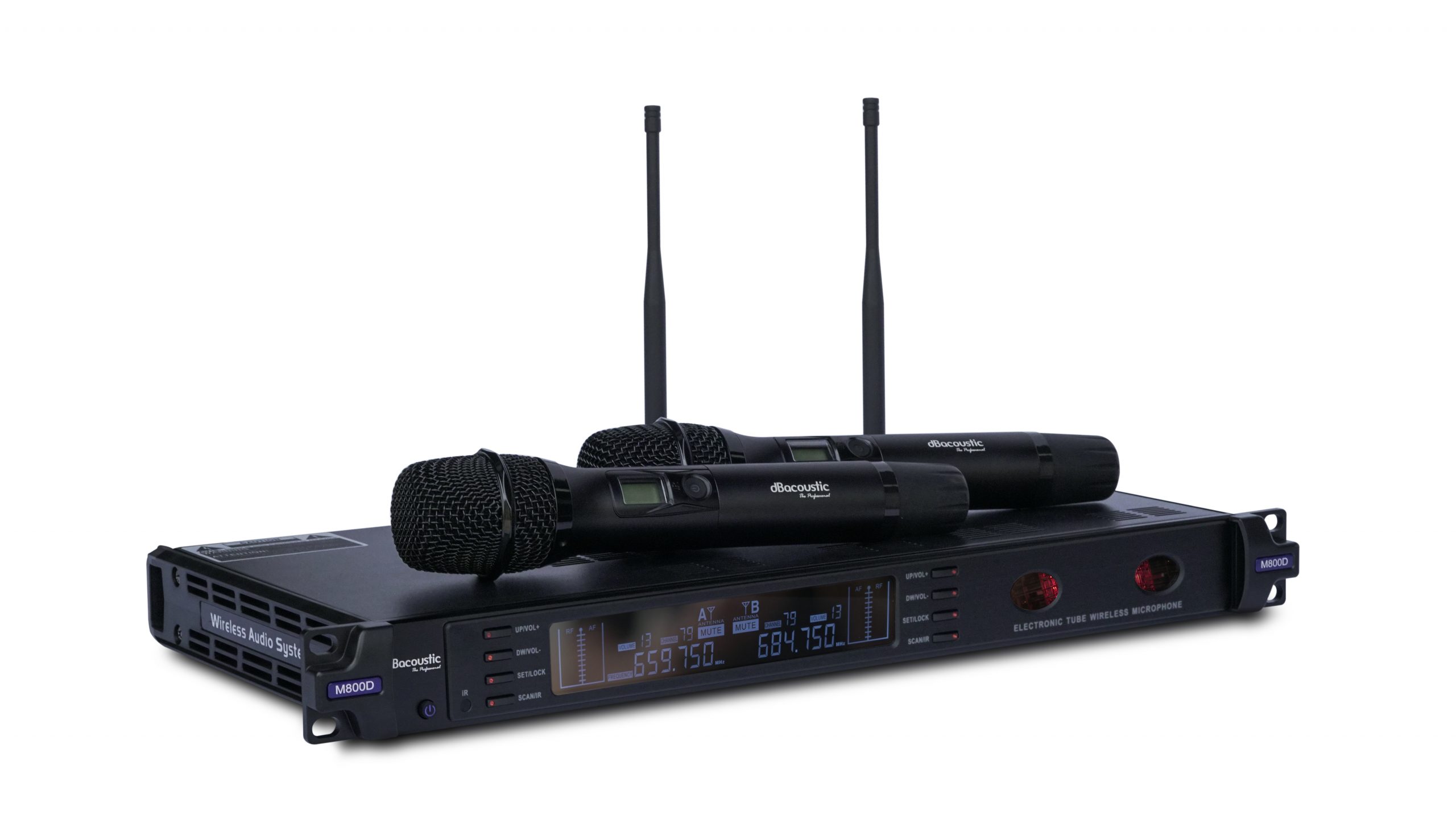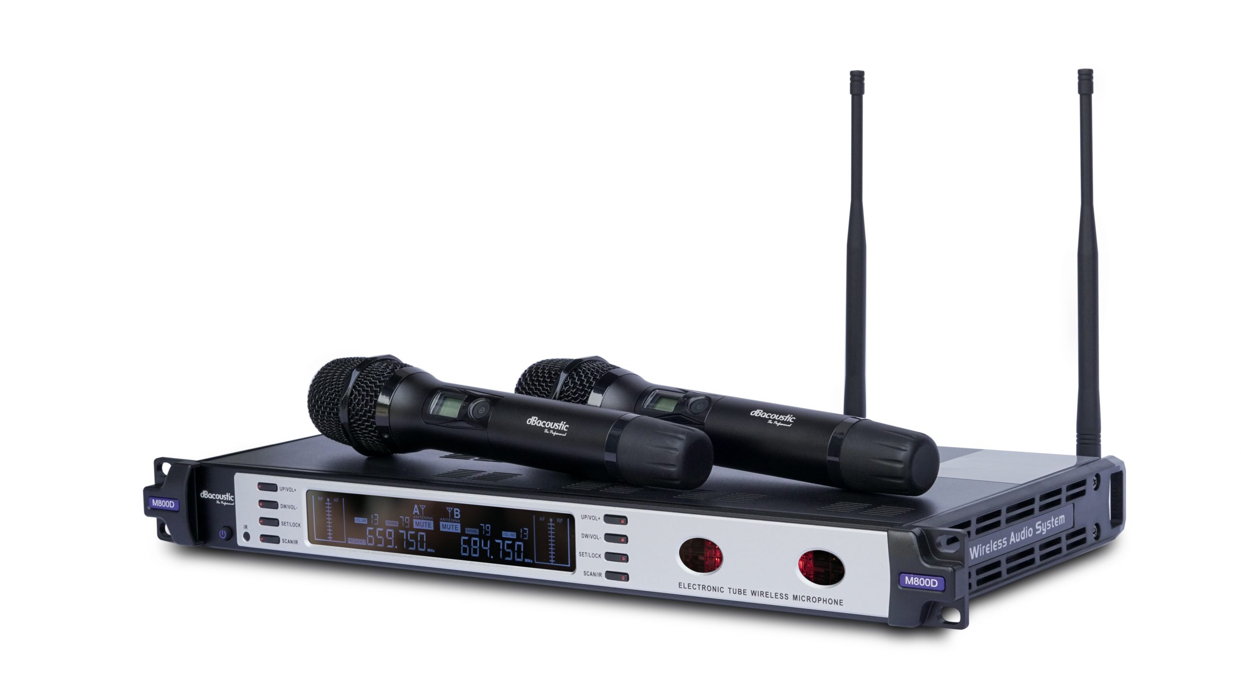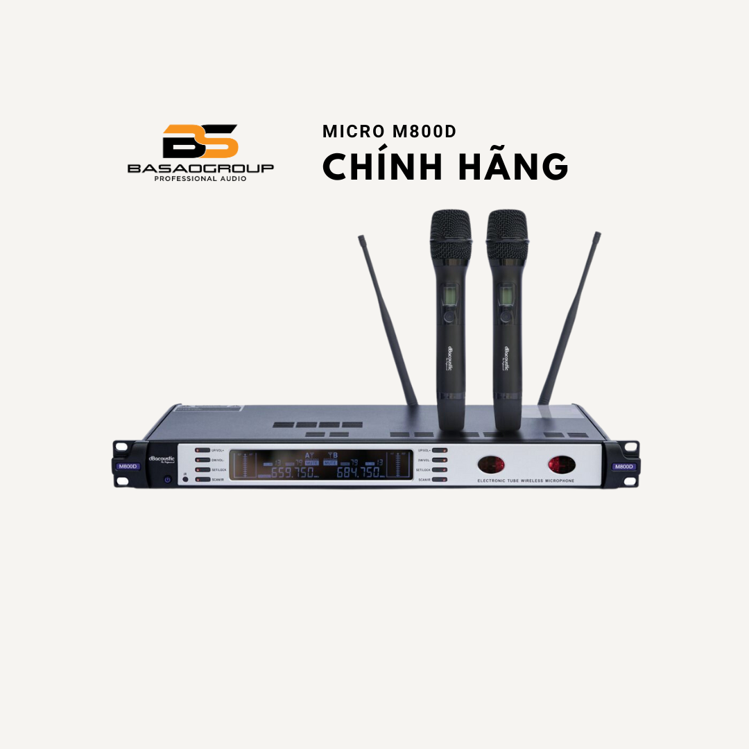 Micro không dây DBacoustic M800D là dòng micro không dây cao cấp được nhập khẩu và phân phối bởi công ty SAL Việt Nam. Micro DBacoustic M800D sử dụng công nghệ hoàn toàn mới là công nghệ bóng đèn led bán dẫn, đem lại chất âm vượt trội hoàn toàn so với dòng micro thông thường. Đây là dòng micro không dây có thể sử dụng cho các phòng hát karaoke chuyên nghiệp hoặc các dàn âm thanh sự kiện cao cấp.